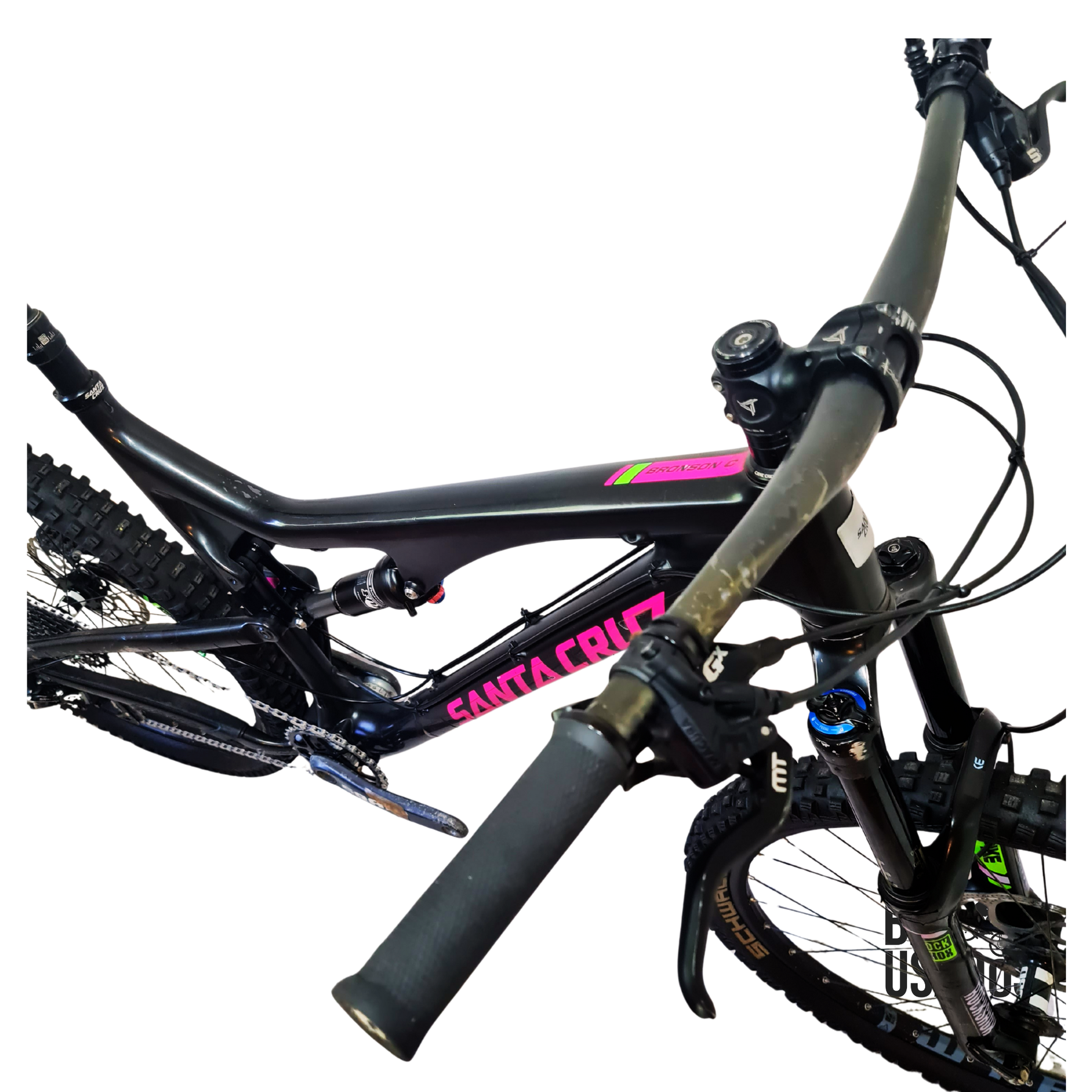 Muy rica Bronson, con cuadro de carbono C. Es una bicicleta muy versátil, ideal para los circuitos capitalinos de trail - enduro.